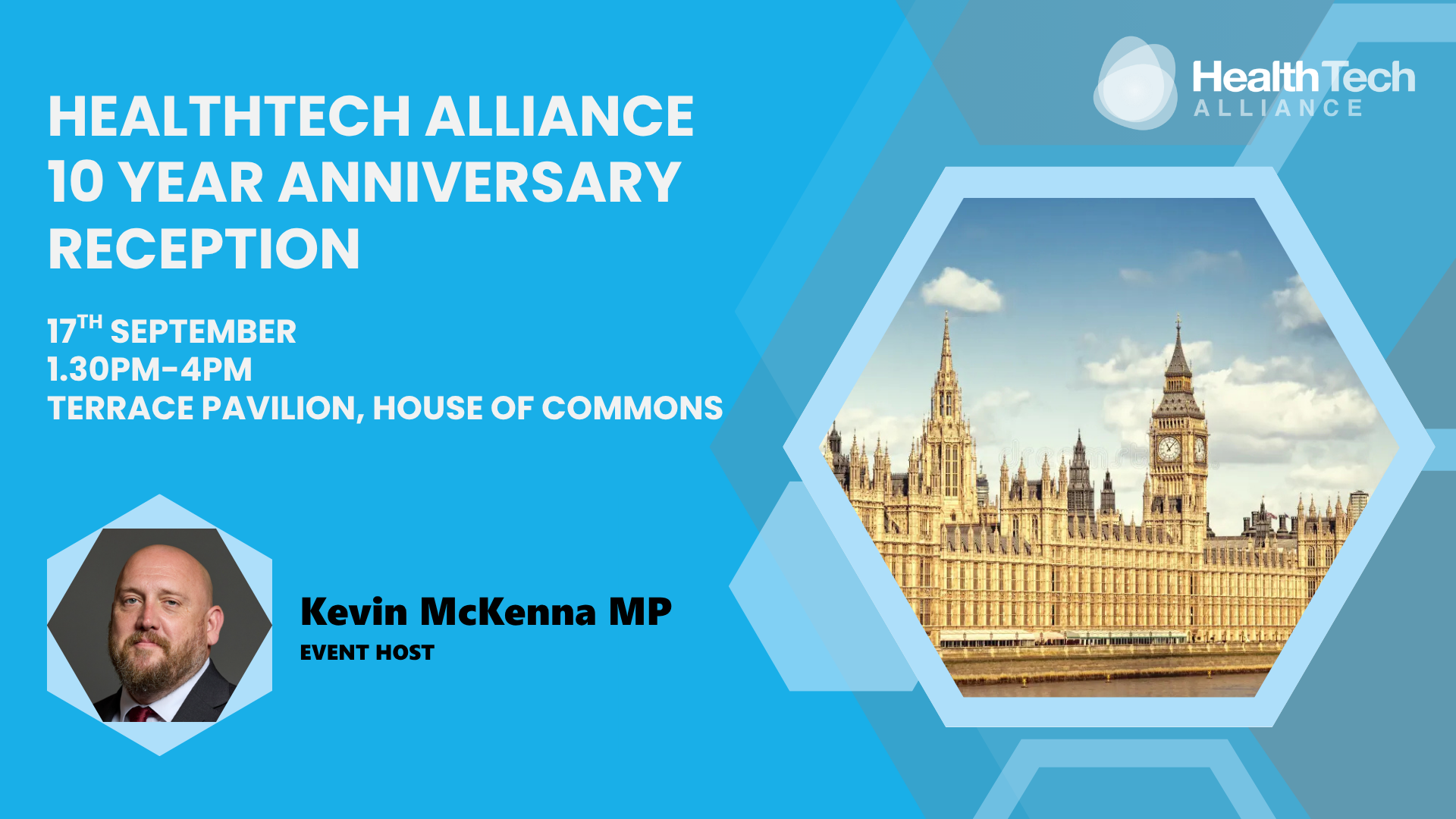 We are excited to invite you to the HealthTech Alliance 10 Year Anniversary Reception taking place on 17th September from 1.30pm to 4pm on the Terrace Pavilion at House of Commons in London.