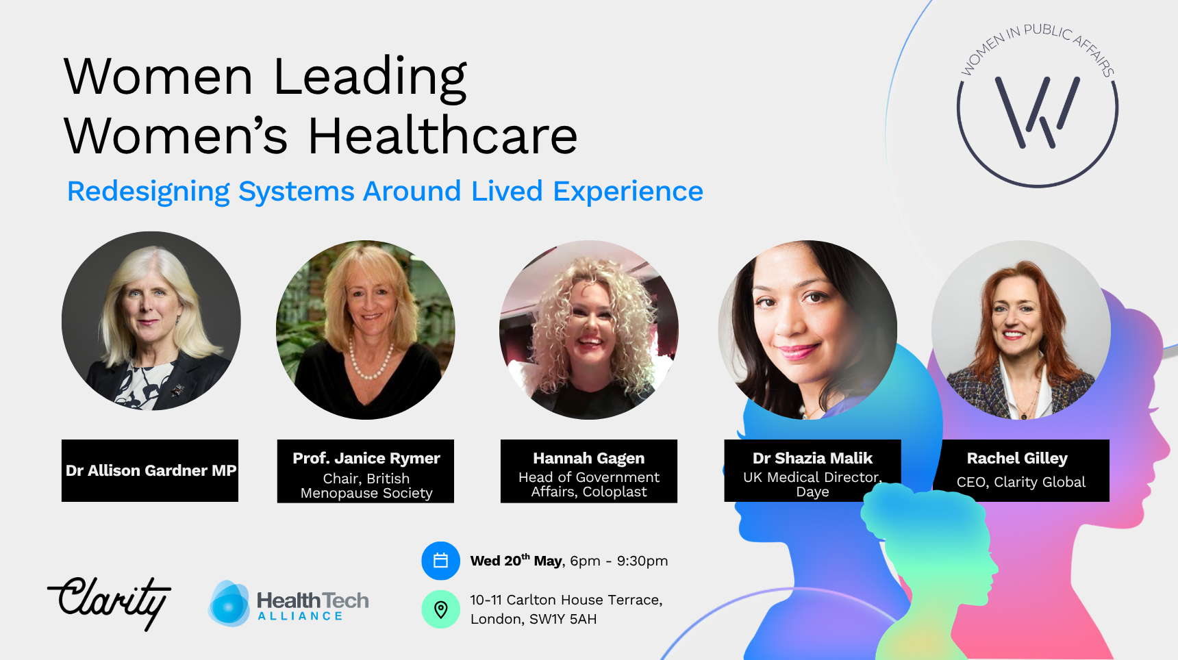 Women’s health has historically been shaped by systems, research models, and care pathways that weren’t designed with women’s lived experience at the centre. Hosted by WiPA (Women in Public Affairs) and sponsored by Clarity Global and the HealthTech Alliance, this event will bring together female leaders from across healthtech, clinical care, policy and advocacy to discuss what is changing – from menopause and fertility, to gynaecology, diagnostics and preventative care – and what that means for patients, providers and policymakers.